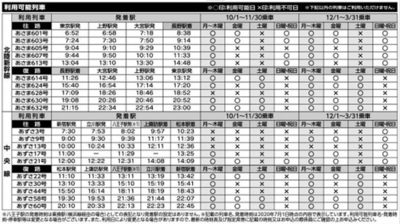 あずさ号  下記列車利用限定