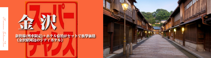 平休日発・列車限定でお得!東京、大宮など首都圏からの往復の新幹線(列車限定)と金沢駅周辺のワンランク上のデラックスクラスホテル宿泊がセットの格安新幹線パックツアー!