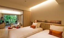 ■山森側 スタンダードツイン(露天風呂付)憧れの客室露天風呂をお気軽に 楽しんでいただけます。プライベート感重視で 楽しみたい方にもおすすめ。 |