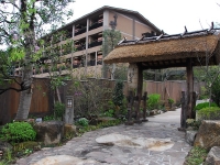 ■大湯屋「玉桂の湯」季趣溢れる庭園の渡り廊下の向こうにある大湯屋「玉桂の湯」には、男女それぞれに古代風呂、信楽風呂、塩化粧風呂、瞑想の湯など、趣きの異なった数種類の内風呂がある。 |