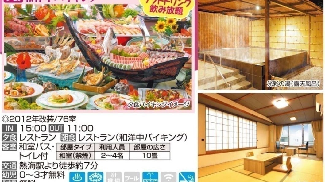 熱海温泉の夕食がバイキングのホテルに泊まる宿泊+JRがセットの格安ツアー!