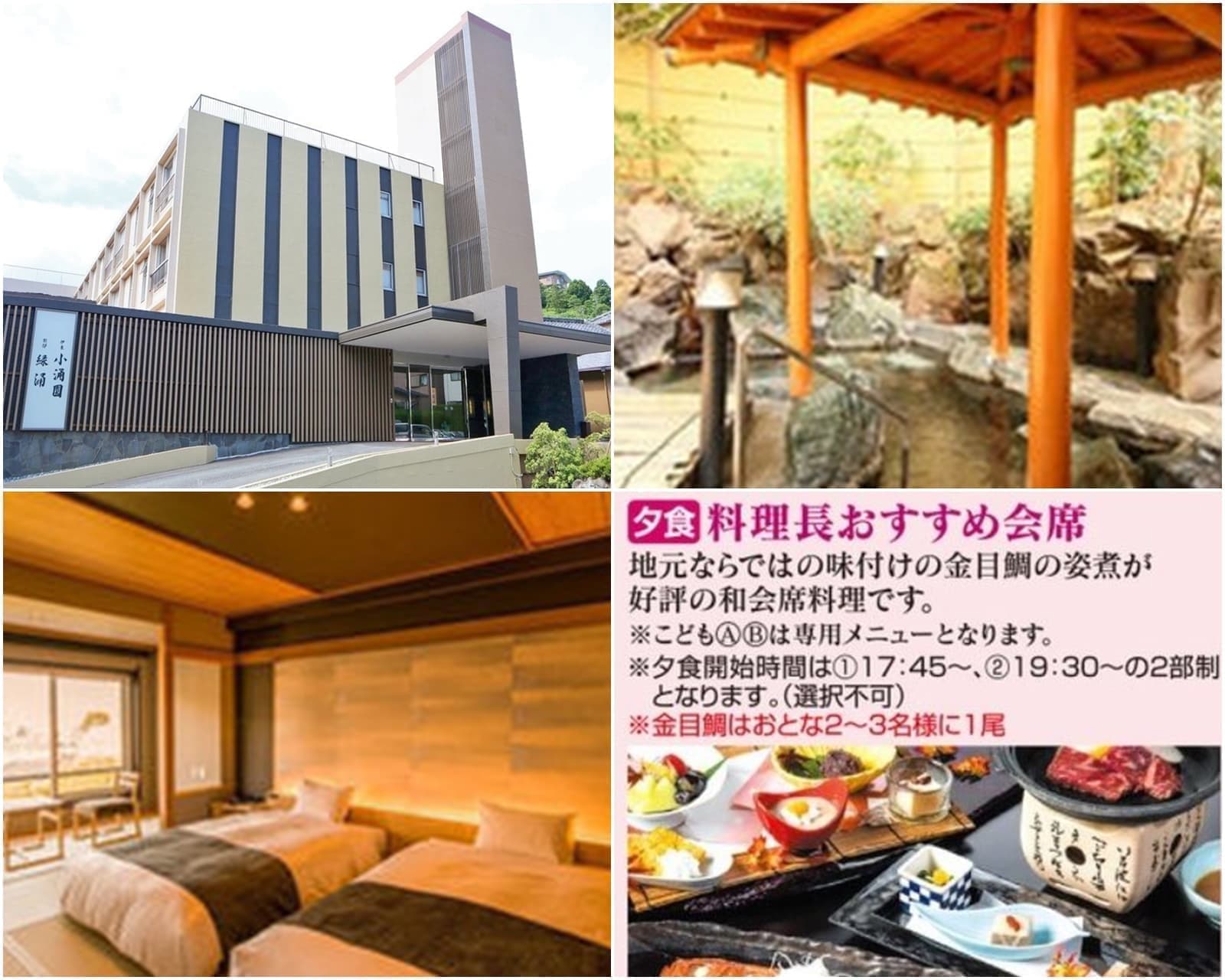 | 料金・詳細 ※提携先のサイトに遷移します | ○セントラル館またはイースト館和室(2~6名1室) ○グランシャトー館和室(2~6名1室) |