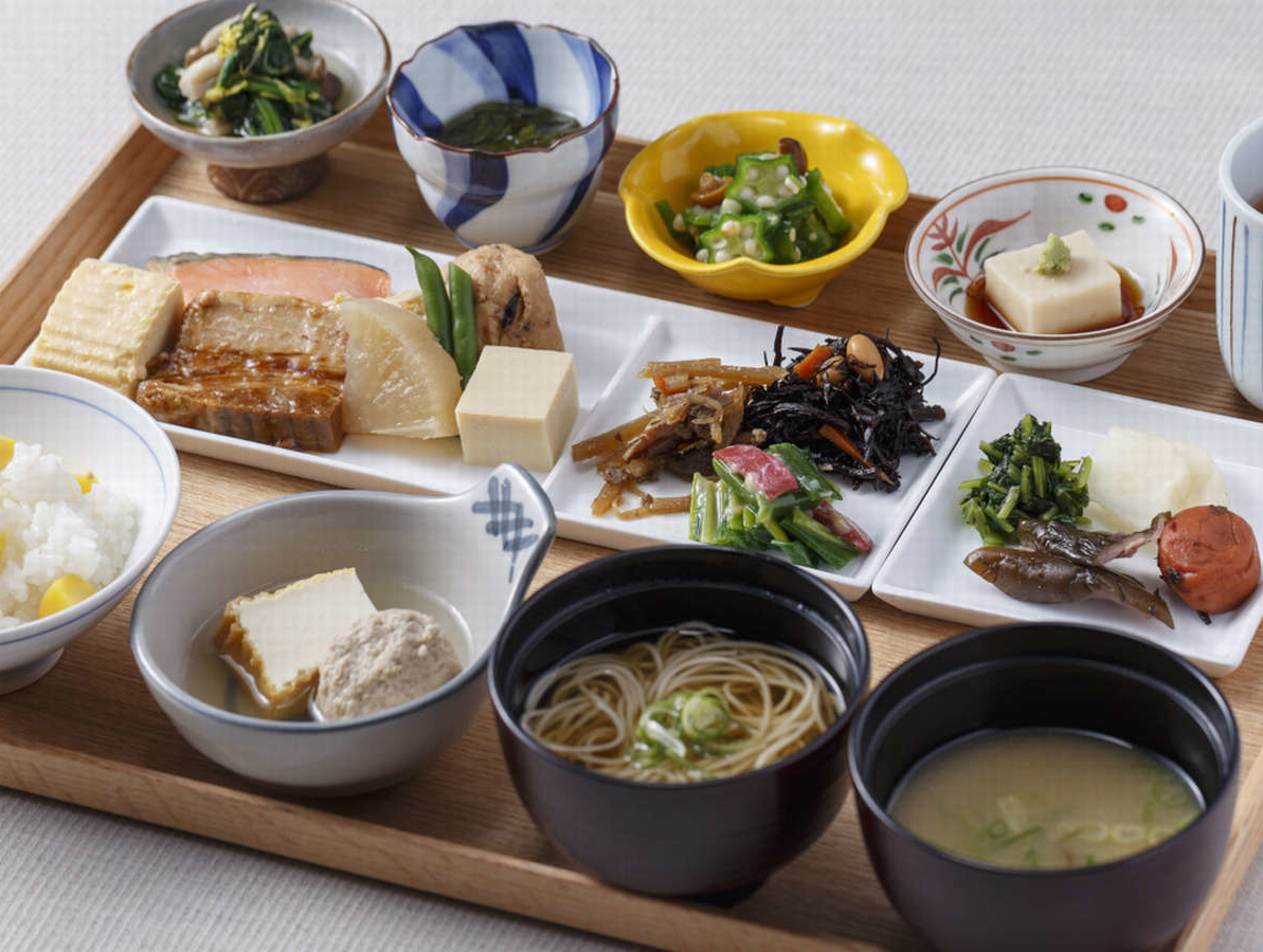 ■居様/IZAMA朝食は京都ならではの出汁を効かせた繊細なおばんざいビュッフェスタイルで提供。京地野菜やお豆腐など、京都の食材もたくさん味わえる小鉢です。湯葉やにしん蕎麦など京都の食材や京都名物、京都の四季を感じながら楽しめる日本料理などを提供いたします。 |