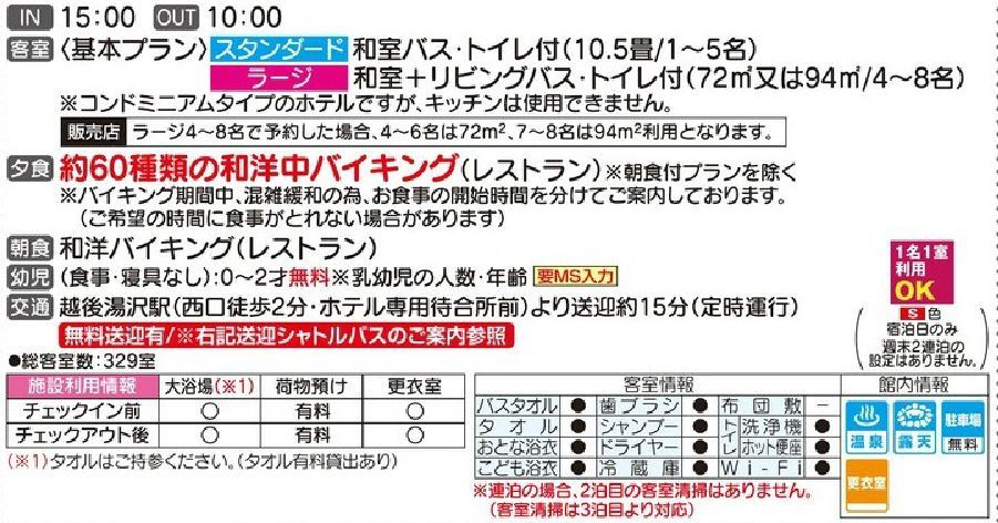 (東京駅発着/【早期申込】30日前までがお得♪プラン/エンゼルグランディア越後中里 和室2部屋+リビング(5名~8名1室)1泊2日・お一人様基本料金)