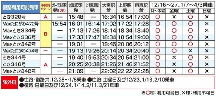 ○東京~越後湯沢 往復新幹線代(とき号普通車指定席/通常期) 12,940円